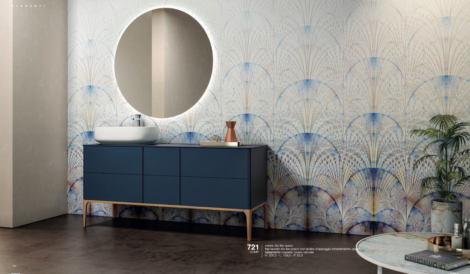 top laccato blu fes opaco con lavabo d’appoggio mineralmarmo opaco