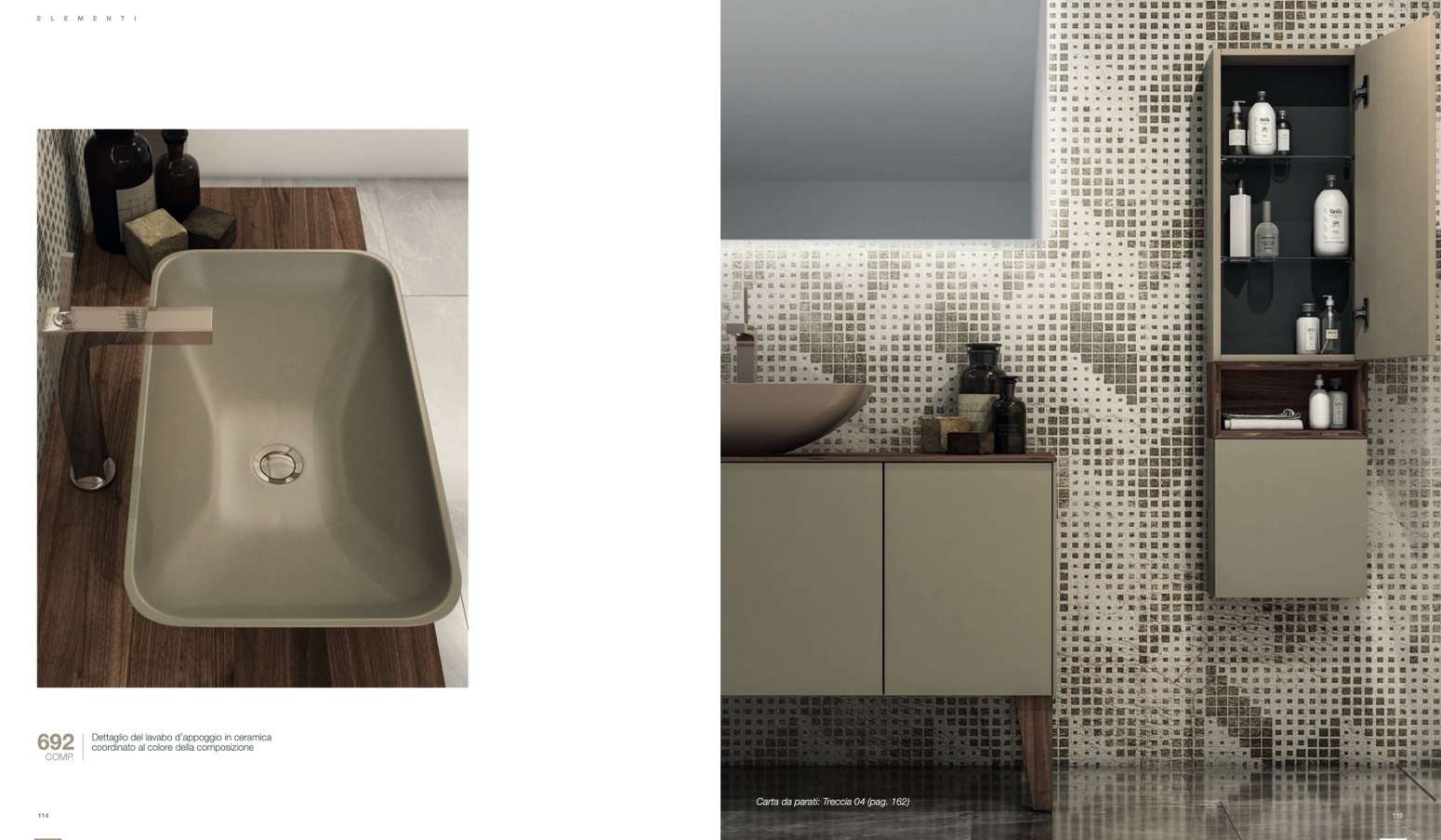 Dettaglio del lavabo d’appoggio in ceramica