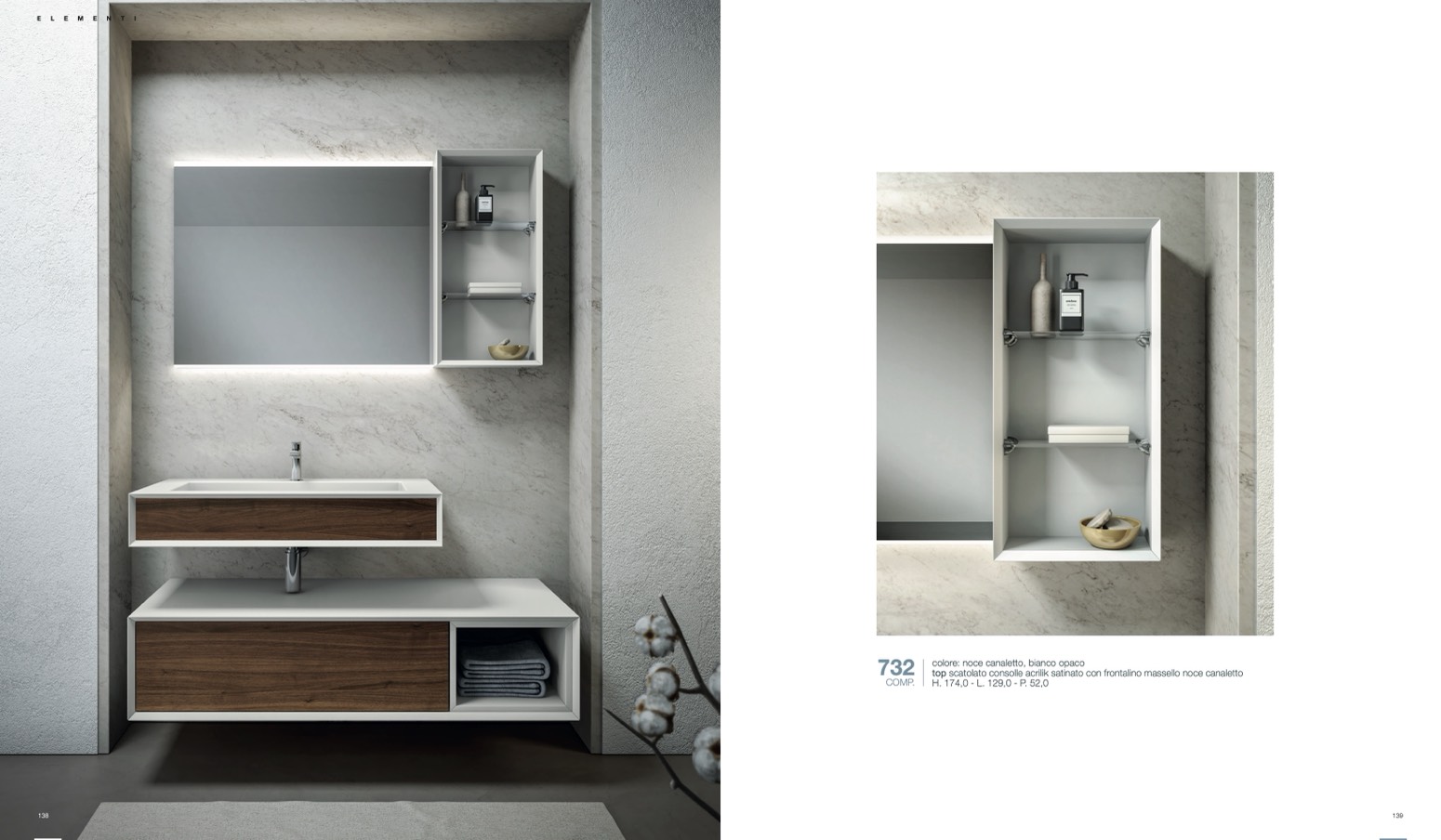 colore: noce canaletto, bianco opaco
