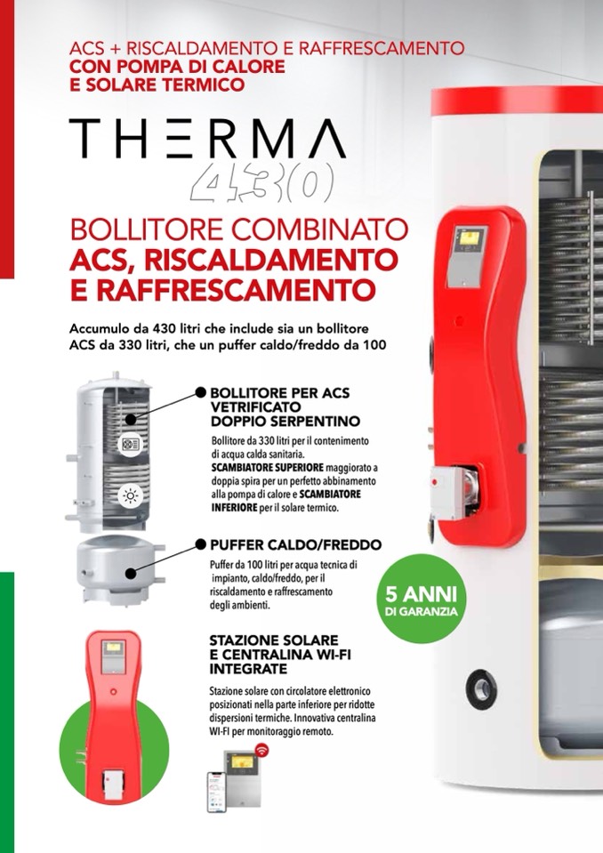 Accumulo da 430 litri che include sia un bollitore