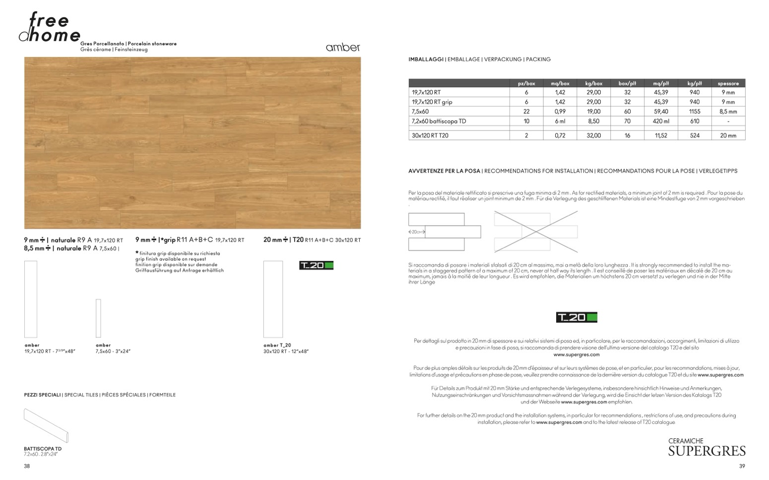 Per dettagli sul prodotto in 20 mm di spessore e sui relativi sistemi di posa ed, in particolare, per le raccomandazioni, accorgimenti, limitazioni di utilizzo