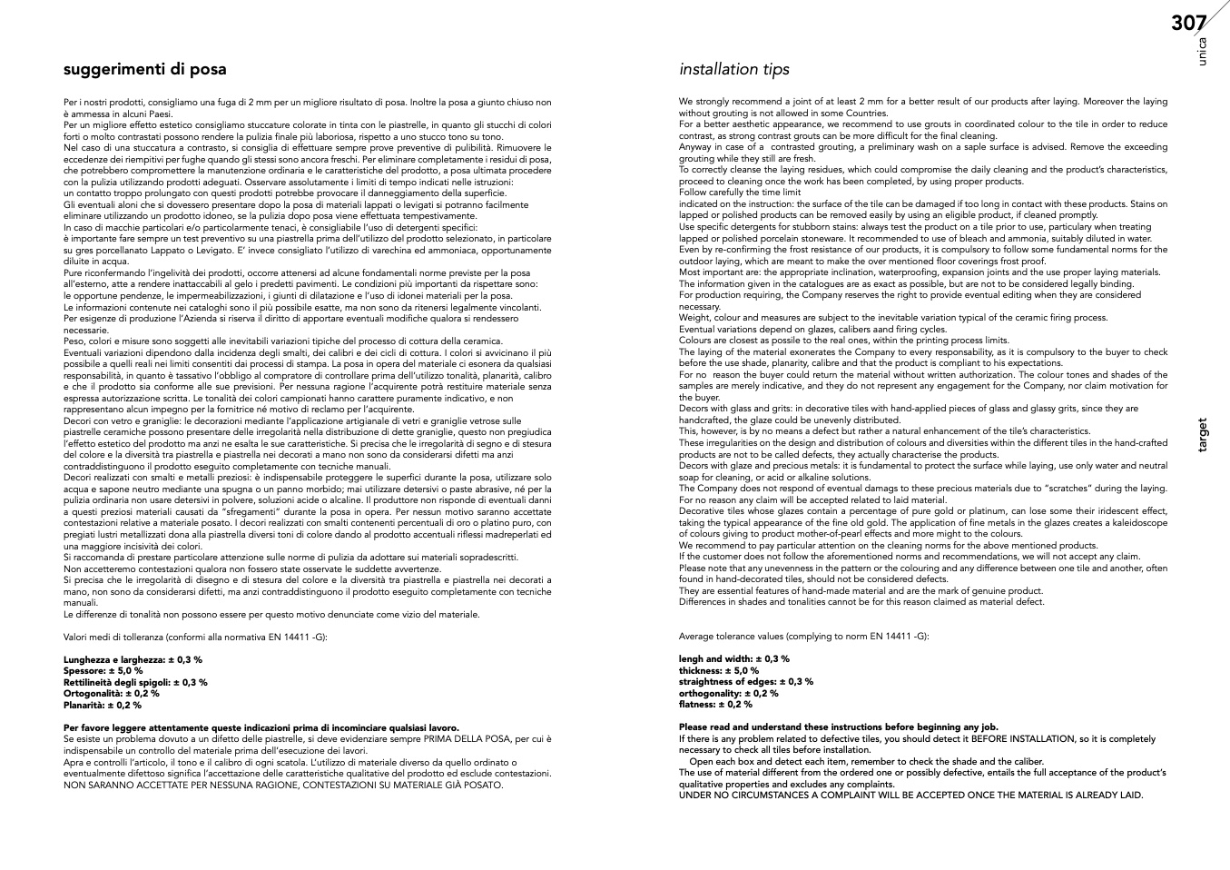 responsabilità, in quanto è tassativo l’obbligo al compratore di controllare prima dell’utilizzo tonalità, planarità, calibro