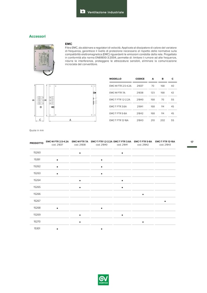 in conformità alla norma EN61800-3:2004, permette di: limitare il rumore ad alte frequenze,