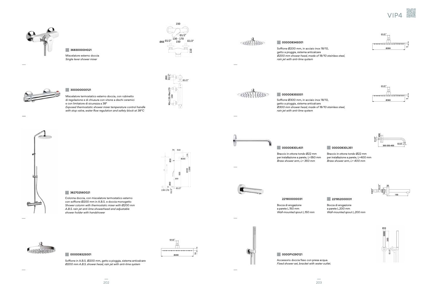 Soffione Ø200 mm, in acciaio inox 18/10,