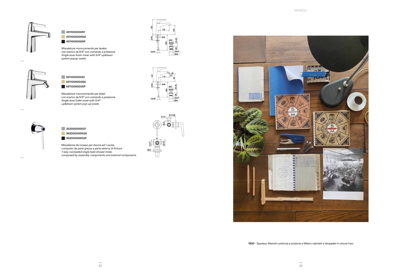 1930 - Spartaco Mamoli comincia a produrre a Milano rubinetti e lampadari in ottone fuso