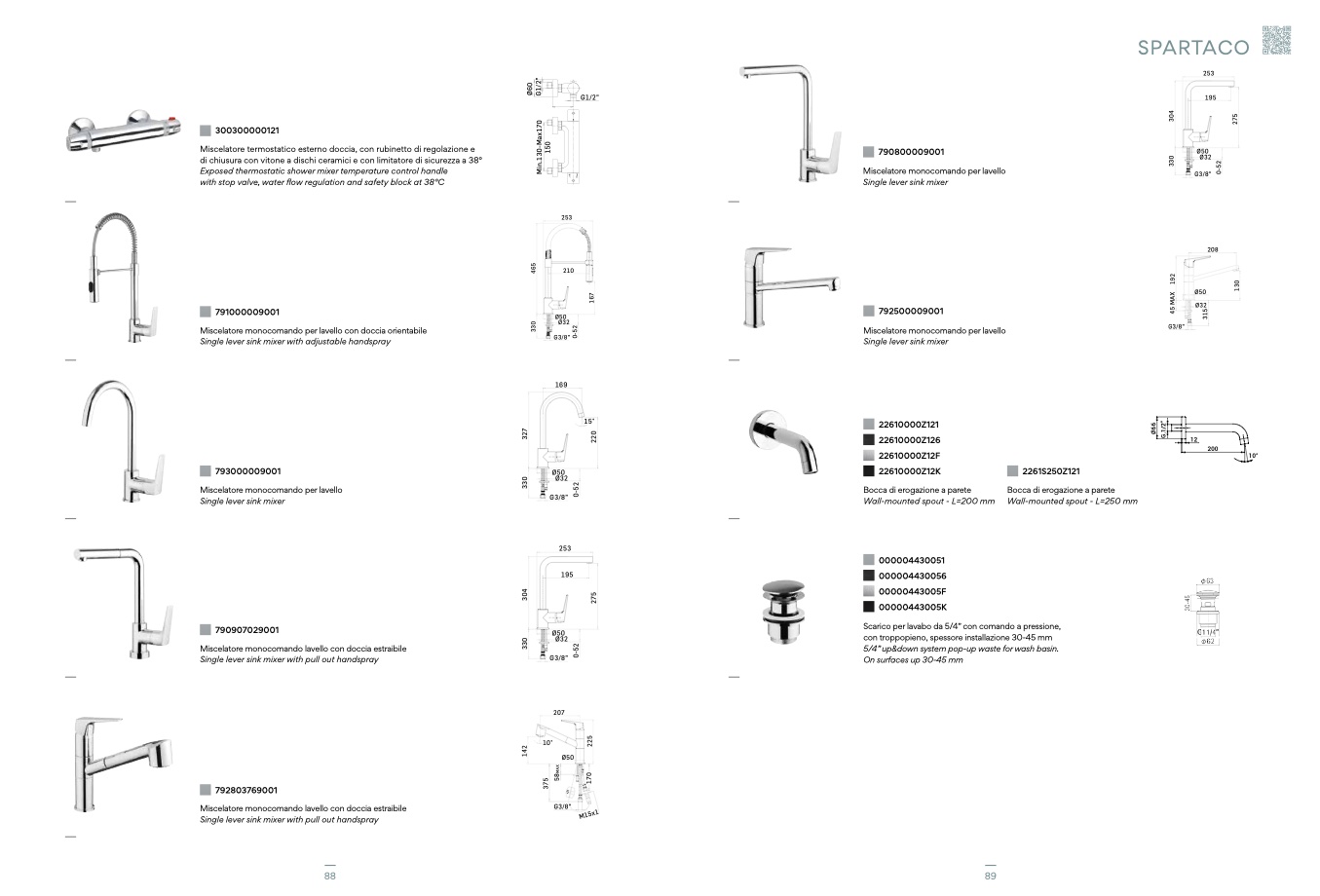 Wall-mounted spout - L=200 mm Wall-mounted spout - L=250 mm