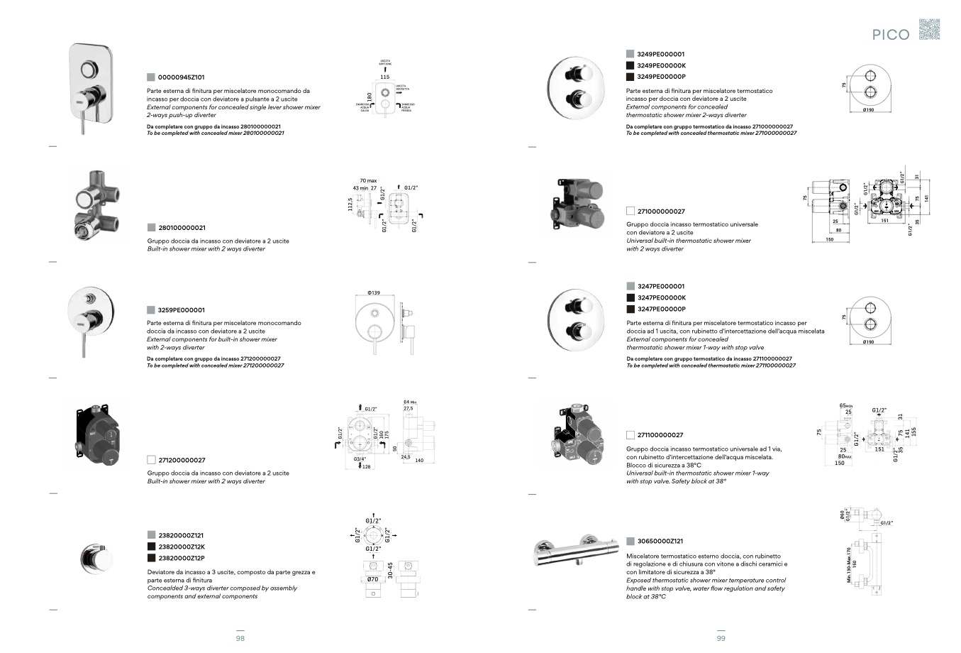 incasso per doccia con deviatore a pulsante a 2 uscite