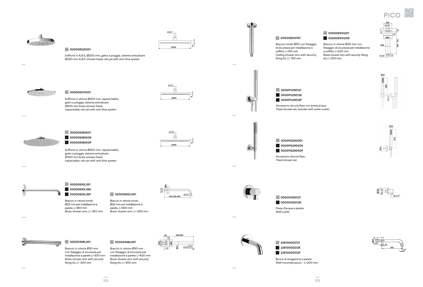 Soffione in A.B.S. Ø200 mm, getto a pioggia, sistema anticalcare