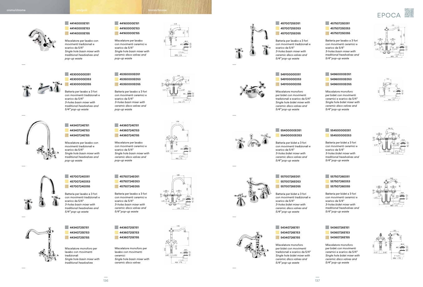 tradizionali e scarico da 5/4”