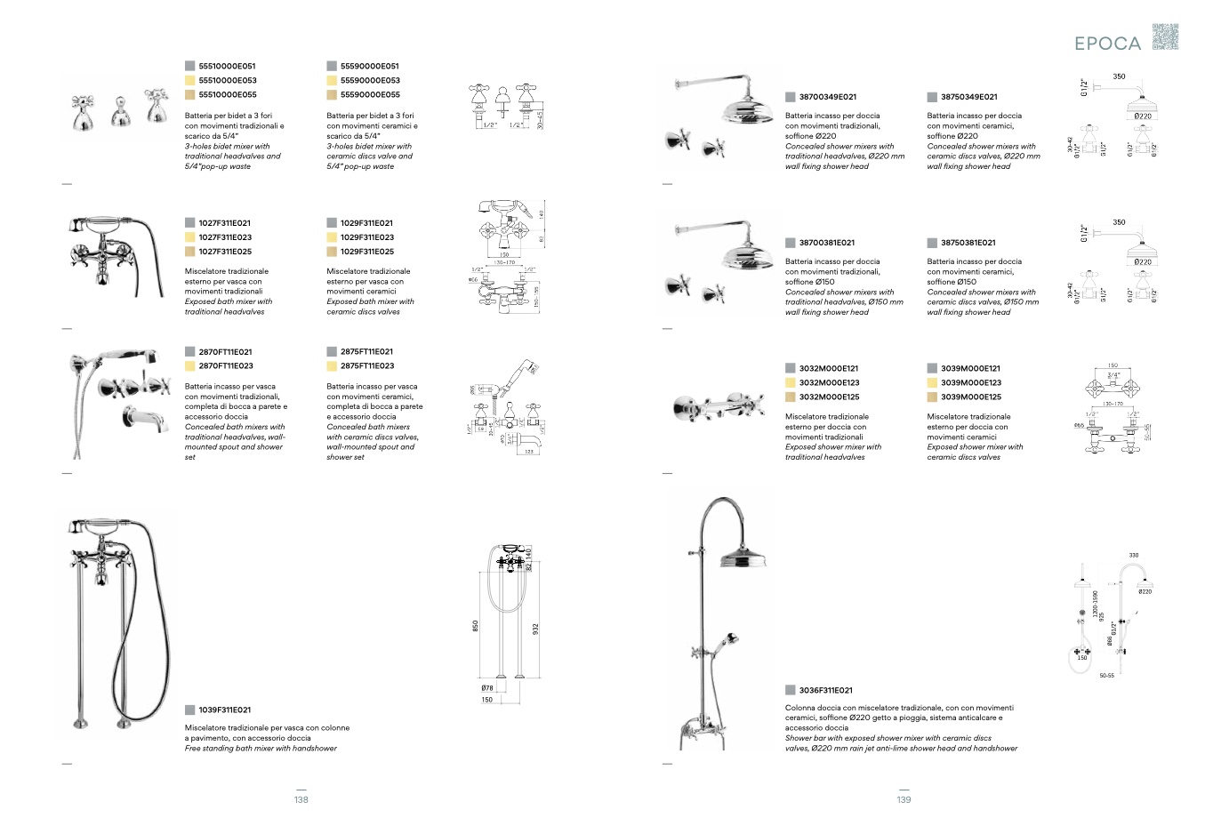 ceramici, soffione Ø220 getto a pioggia, sistema anticalcare e