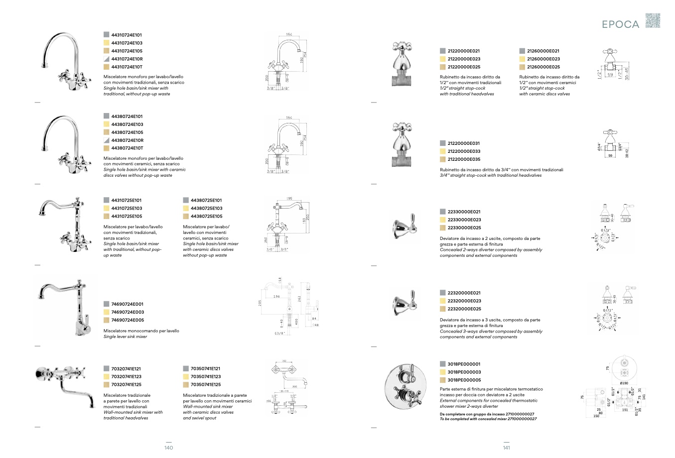 Rubinetto da incasso diritto da 3/4’’ con movimenti tradizionali