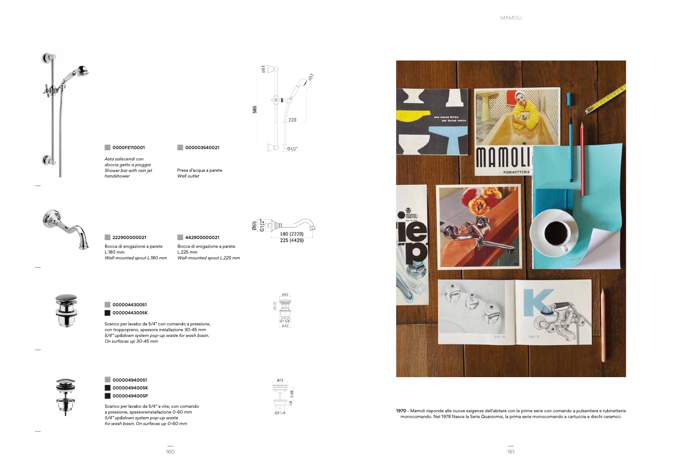1970 - Mamoli risponde alle nuove esigenze dell’abitare con le prime serie con comando a pulsantiera e rubinetterie