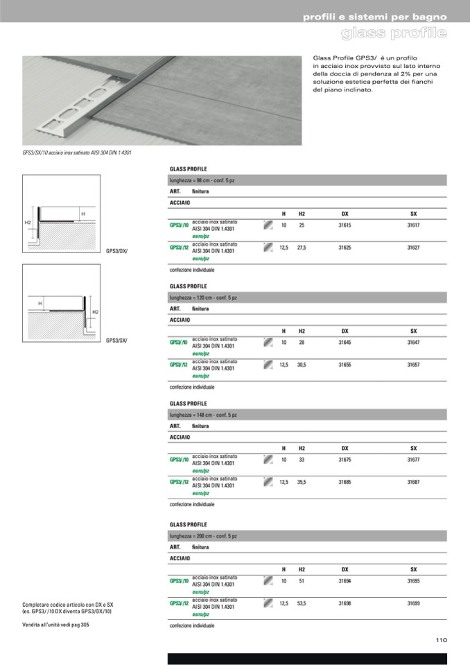 GPS3/SX/10 acciaio inox satinato AISI 304 DIN 1.4301