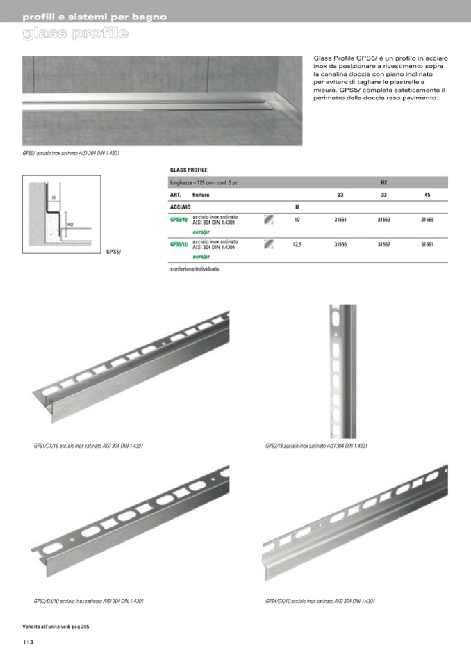 GPS5/ acciaio inox satinato AISI 304 DIN 1.4301