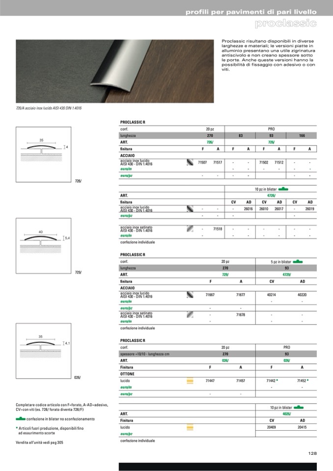 CV=con viti (es. 726/ forato diventa 726/F)
