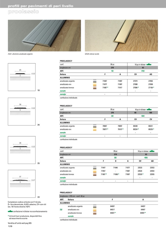 D= foro decentrato, A/AD=adesivo, CV=con viti