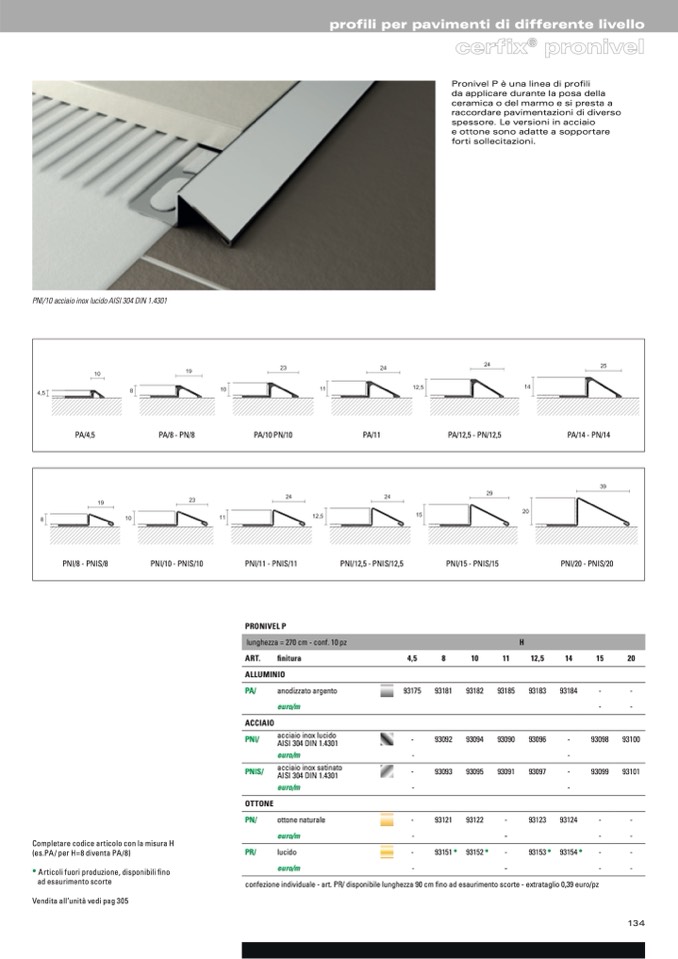 Pronivel P è una linea di profili