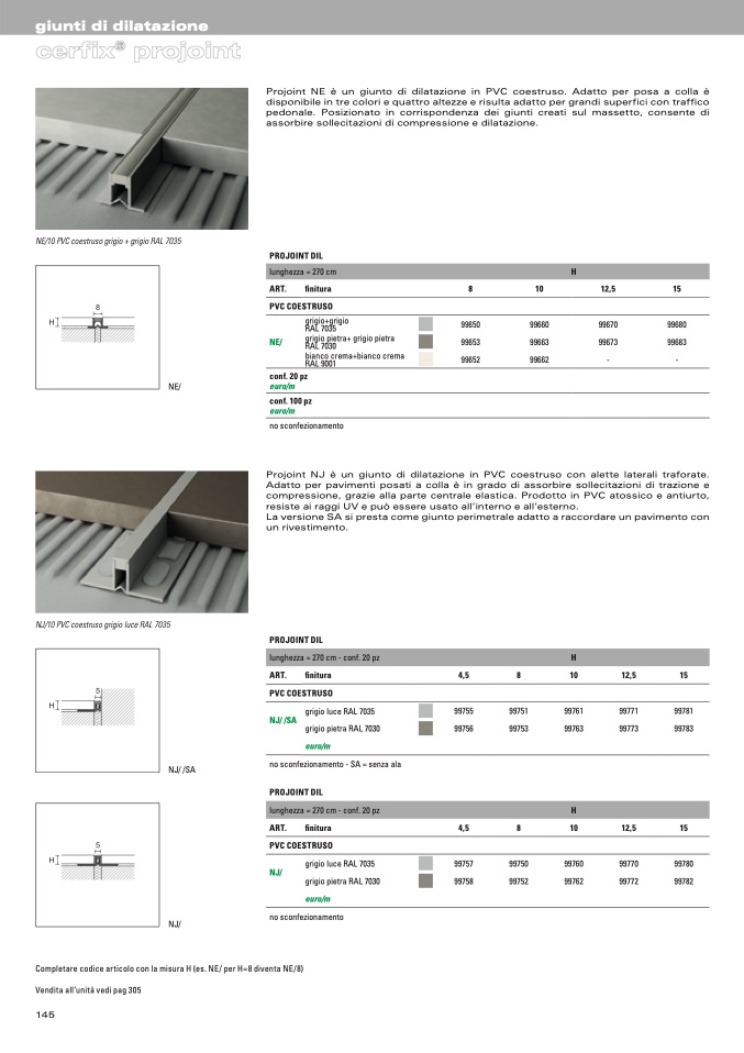 Projoint NE è un giunto di dilatazione in PVC coestruso. Adatto per posa a colla è