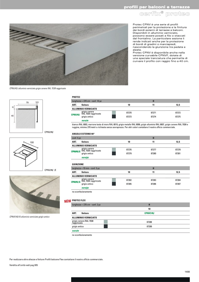 Per realizzare altre altezze e finiture Profili balcone Flex contattare il nostro ufficio commerciale.