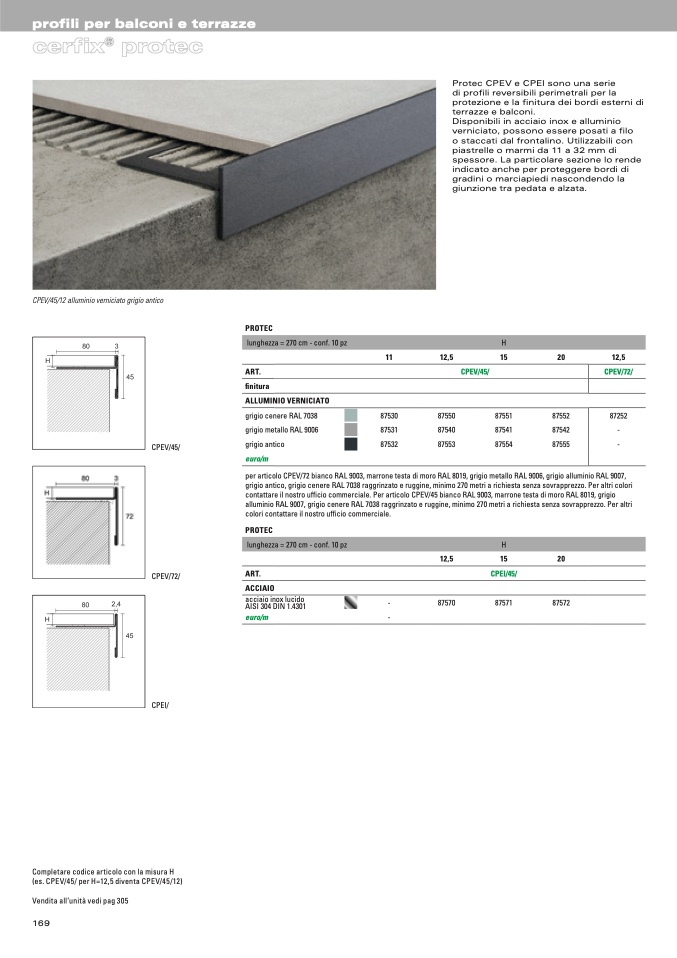 contattare il nostro ufficio commerciale. Per articolo CPEV/45 bianco RAL 9003, marrone testa di moro RAL 8019, grigio