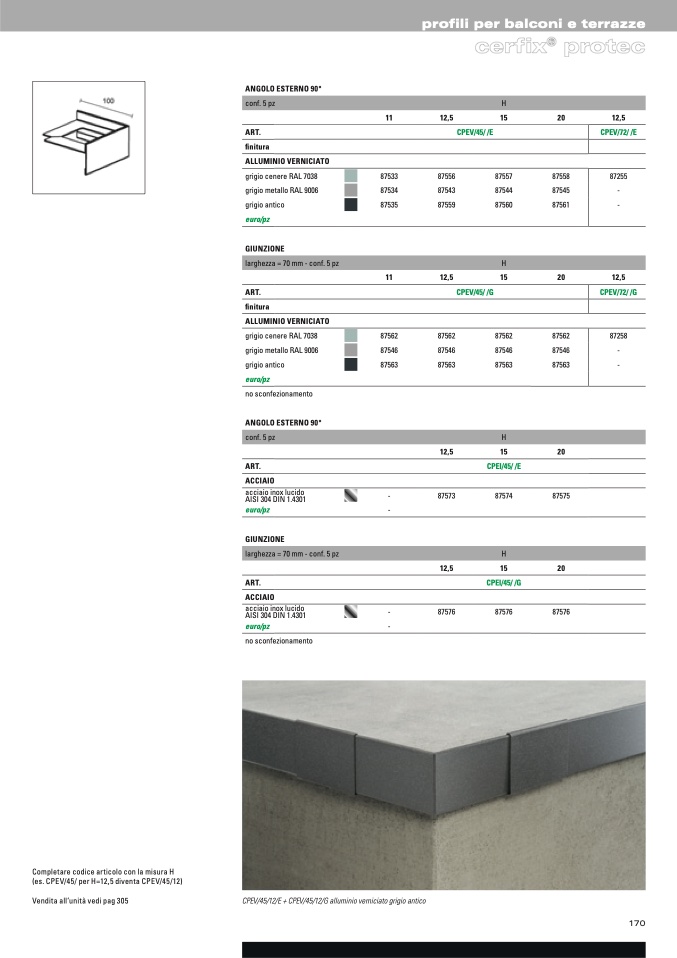 CPEV/45/12/E + CPEV/45/12/G alluminio verniciato grigio antico