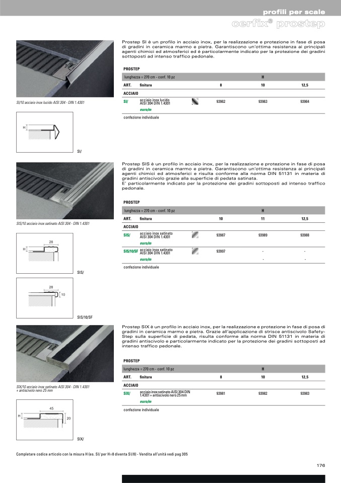 Completare codice articolo con la misura H (es. SI/ per H=8 diventa SI/8) - Vendita all’unità vedi pag 305