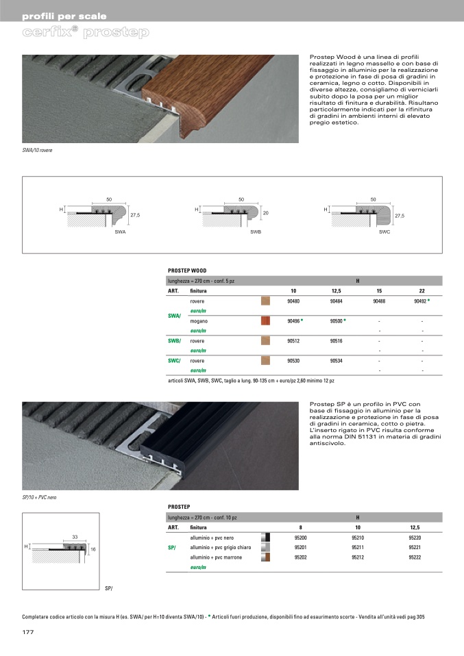 Completare codice articolo con la misura H (es. SWA/ per H=10 diventa SWA/10) - • Articoli fuori produzione, disponibili fino ad esaurimento scorte - Vendita all’unità vedi pag 305