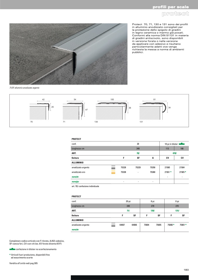 SF=senza fori, CV=con viti (es. 87/ forato diventa 87/F)