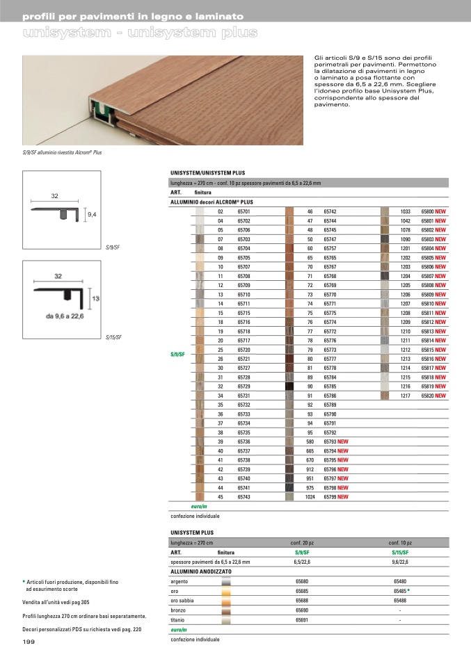 lunghezza = 270 cm - conf. 10 pz spessore pavimenti da 6,5 a 22,6 mm