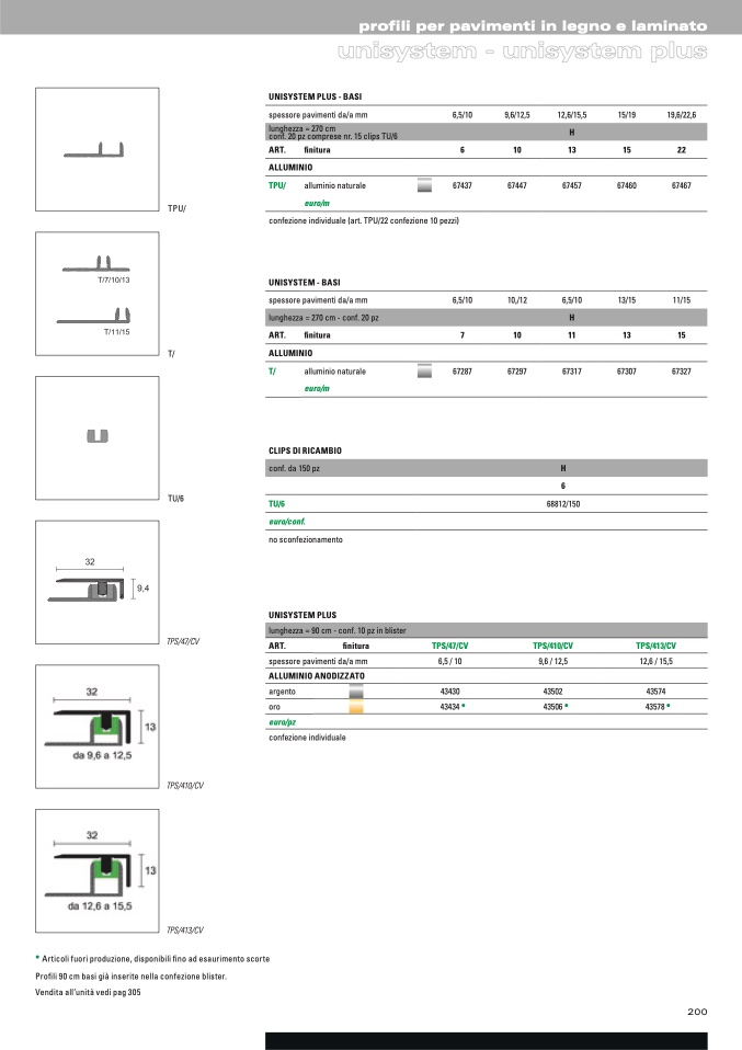 • Articoli fuori produzione, disponibili fino ad esaurimento scorte