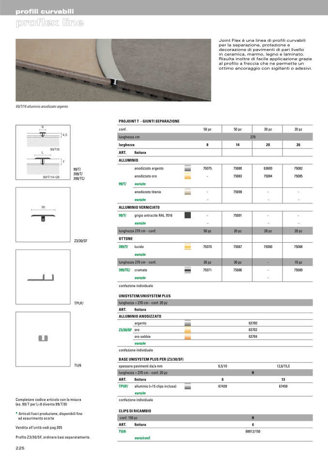 Profilo Z3/30/SF, ordinare basi separatamente.