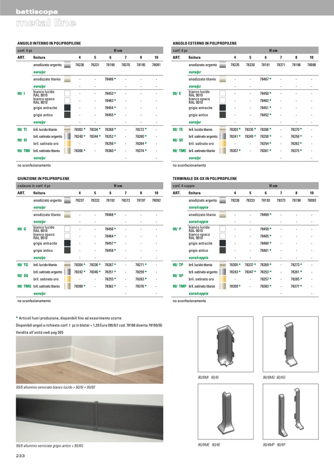 Disponibili angoli a richiesta conf. 1 pz in blister + 1,20 Euro (90/6/I cod. 78190 diventa 78190/B)