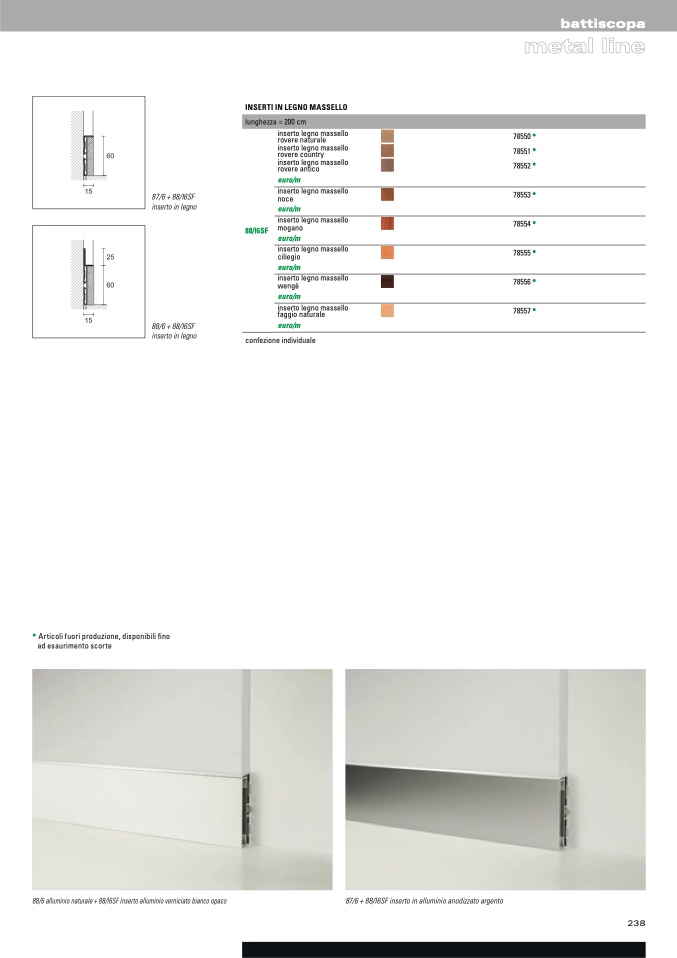 88/6 alluminio naturale + 88/I6SF inserto alluminio verniciato bianco opaco