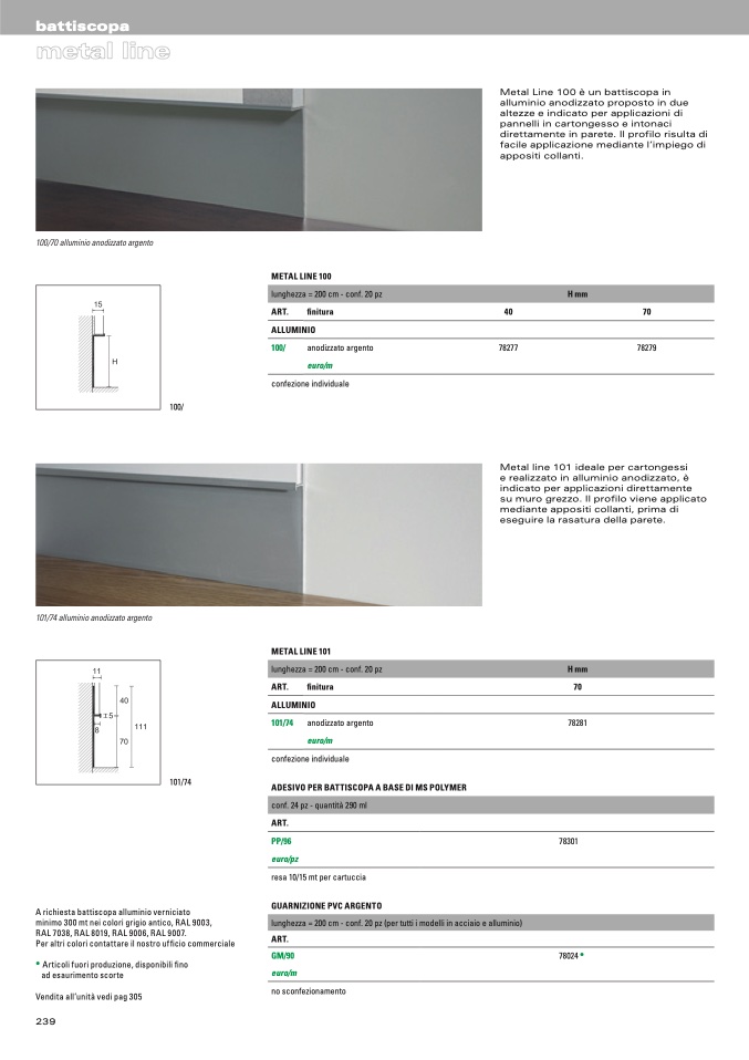 lunghezza = 200 cm - conf. 20 pz (per tutti i modelli in acciaio e alluminio)