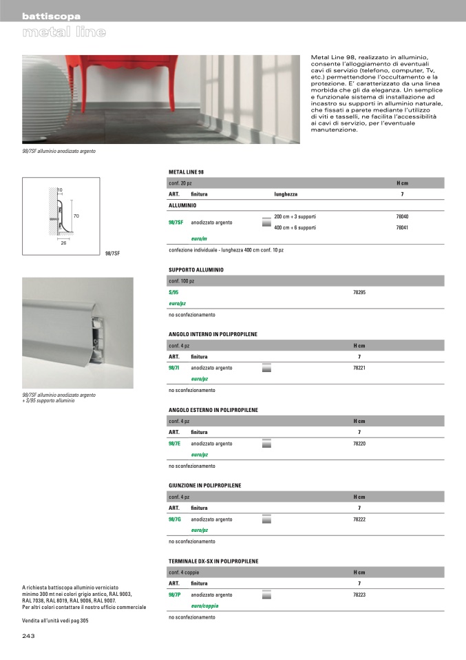 RAL 7038, RAL 8019, RAL 9006, RAL 9007.