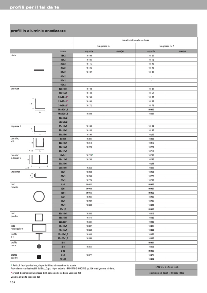 * articoli disponibili in lunghezza 3 mt. senza codice a barre vedi pag 262