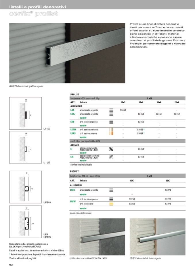 listelli e profili decorativi