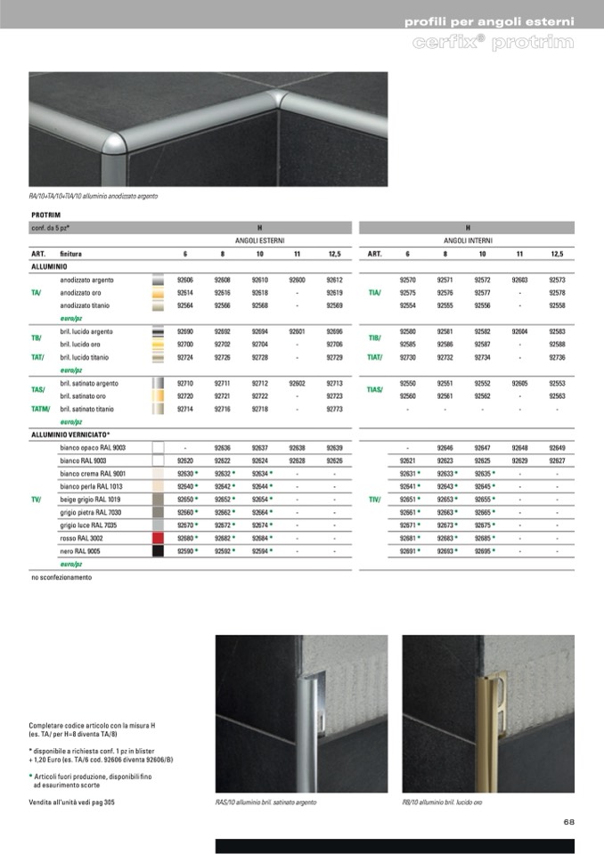 profili per angoli esterni