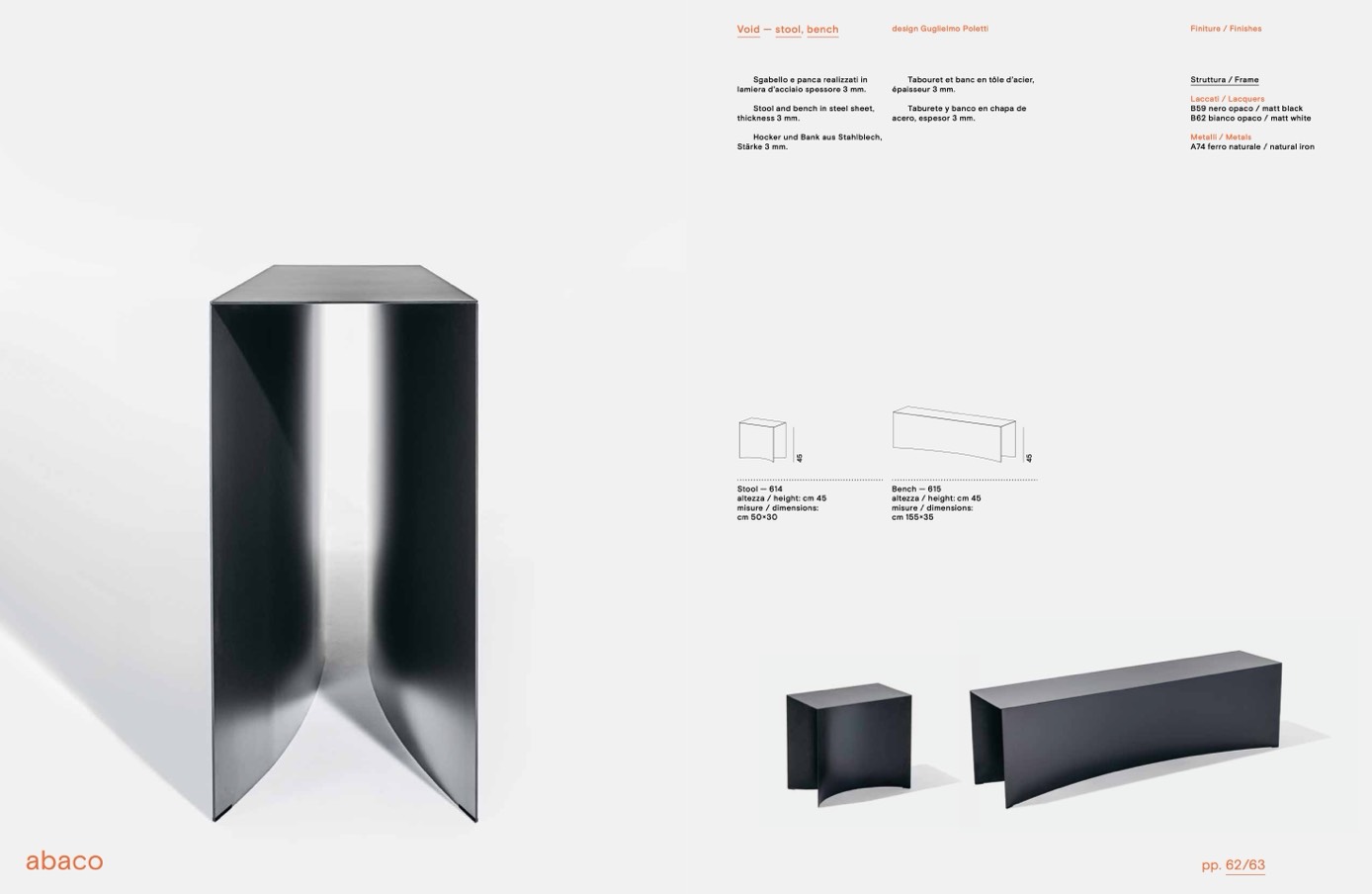 Stool and bench in steel sheet,