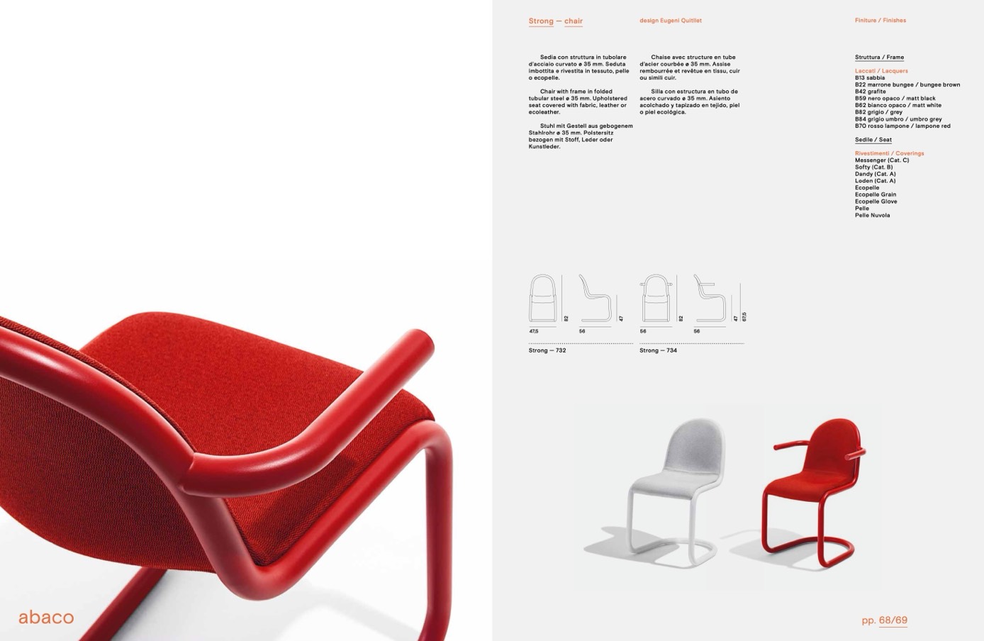 d’acciaio curvato ø 35 mm. Seduta