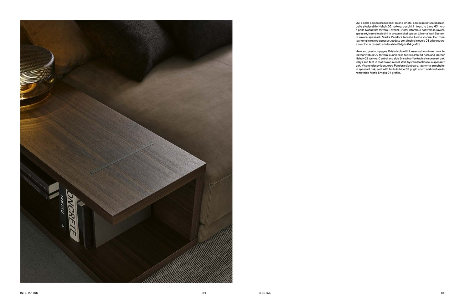 e pelle Nabuk 02 tortora. Tavolini Bristol laterale e centrale in rovere