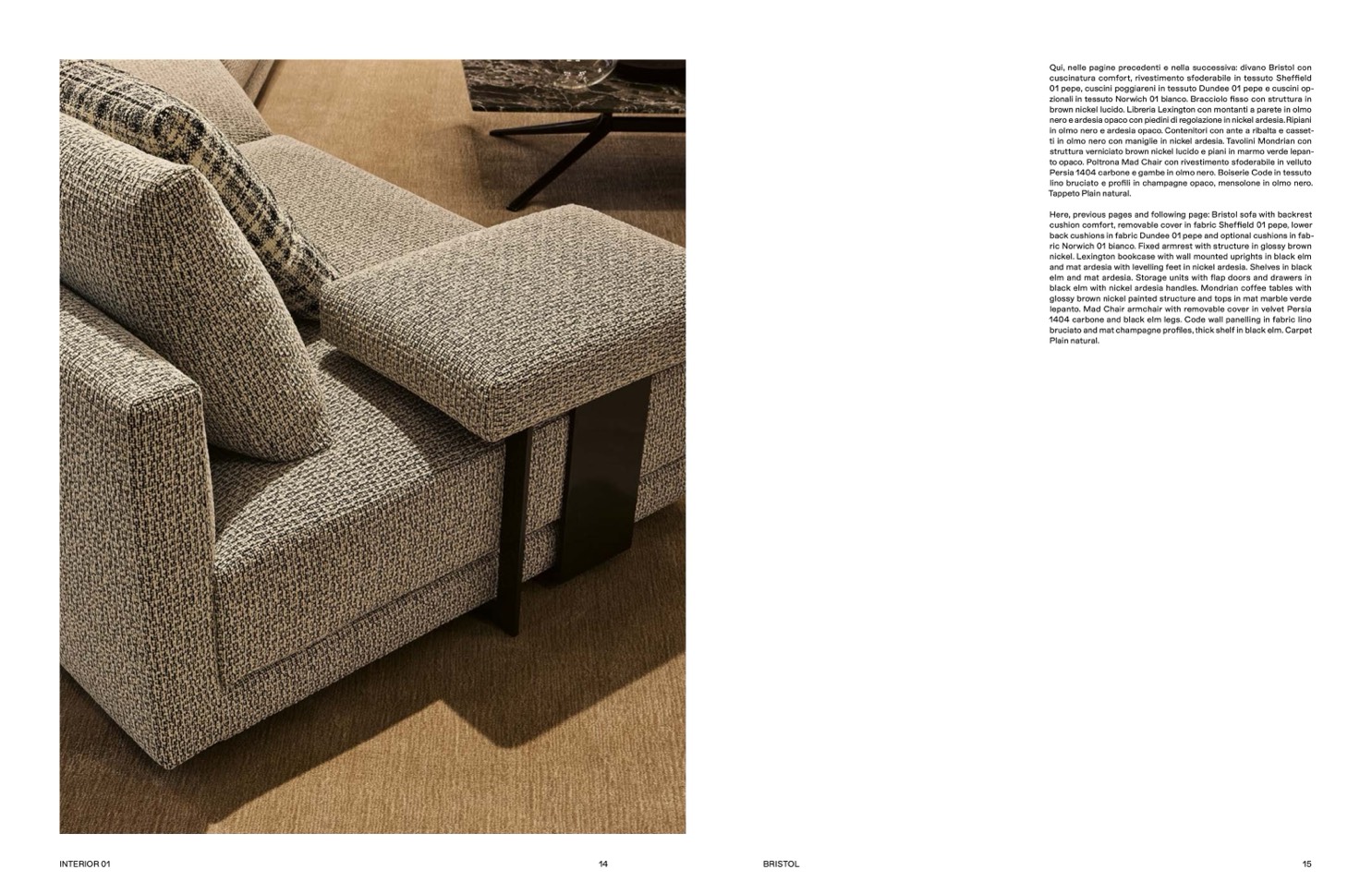 Qui, nelle pagine precedenti e nella successiva: divano Bristol con