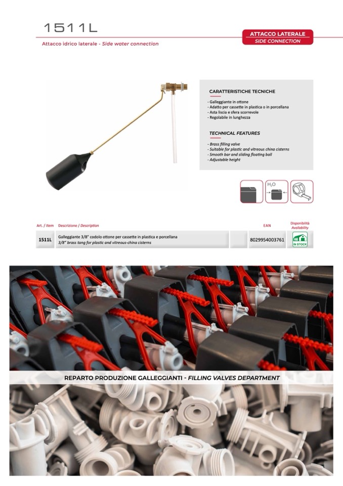 Galleggiante 3/8” codolo ottone per cassette in plastica e porcellana