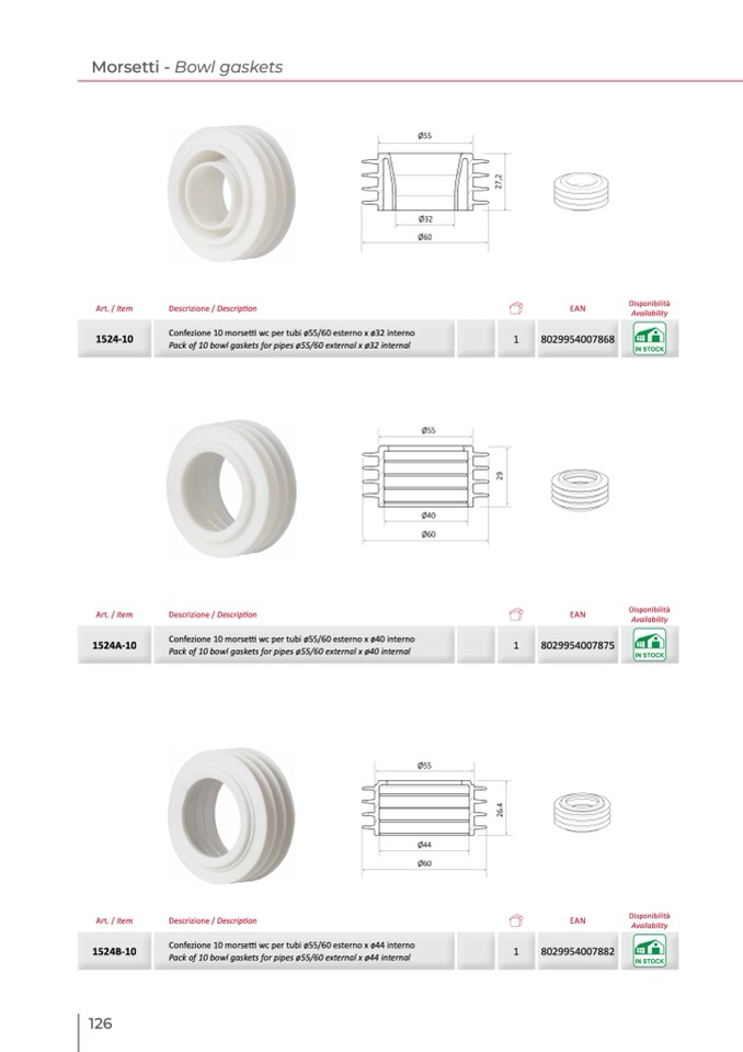 Pack of 10 bowl gaskets for pipes ø55/60 external x ø40 internal