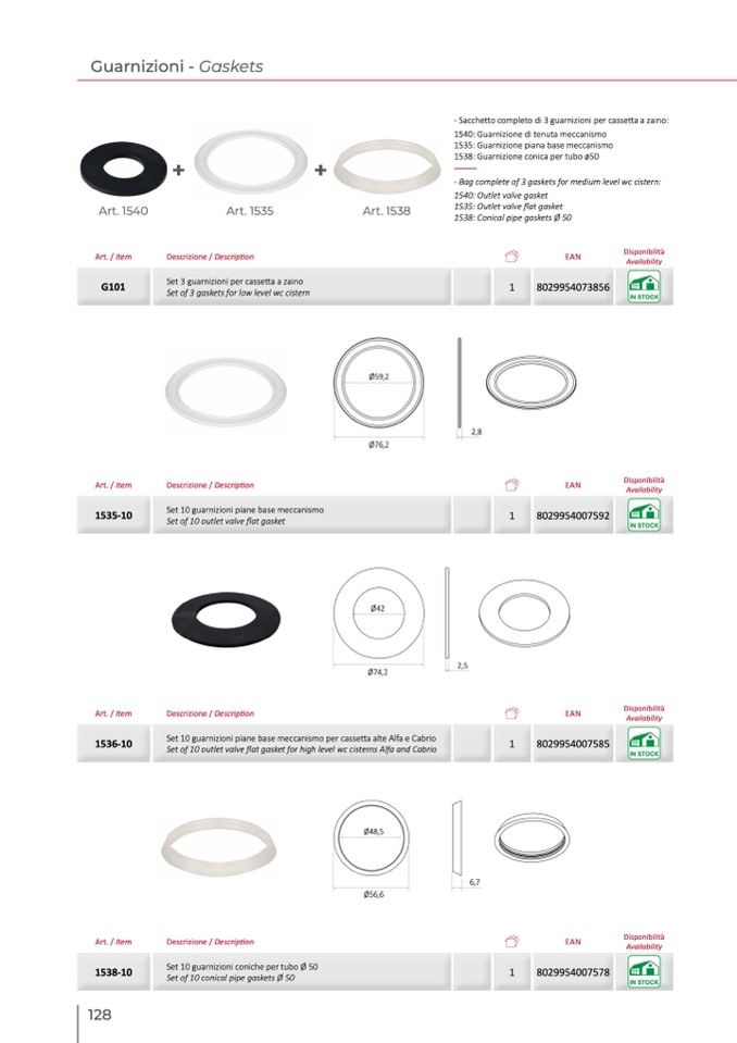 - Bag complete of 3 gaskets for medium level wc cistern:
