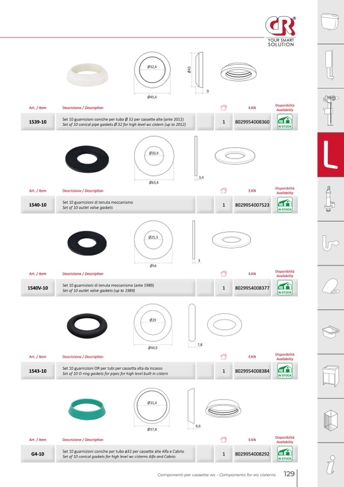 Set of 10 conical gaskets for high level wc cisterns Alfa and Cabrio