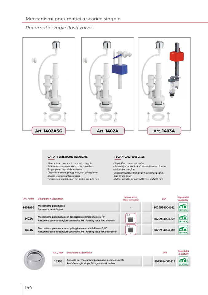 Meccanismo pneumatico con galleggiante entrata dal basso 3/8”