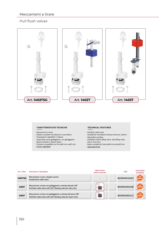 Meccanismo a tirare con galleggiante a entrata laterale 3/8”