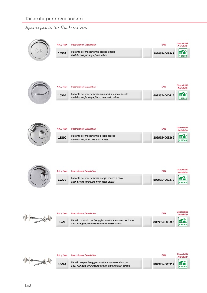 Pulsante per meccanismi a scarico singolo
