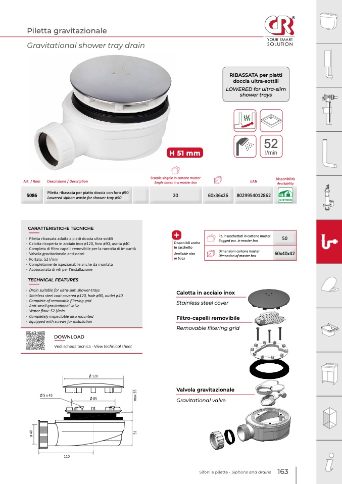 - Piletta ribassata adatta a piatti doccia ultra-so